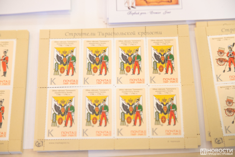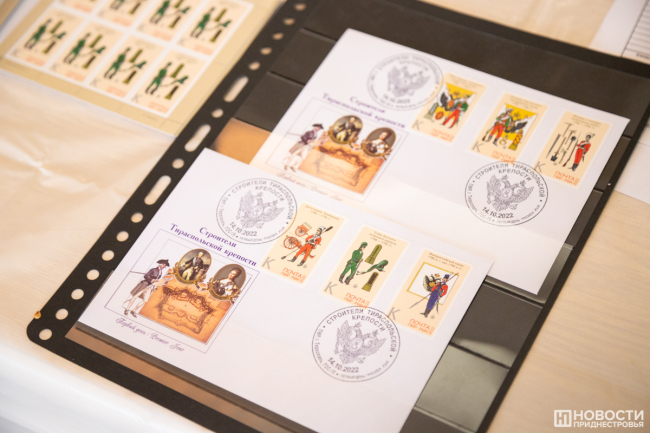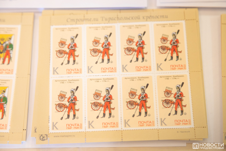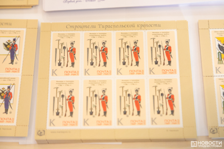 14 Окт., 2022, 12:47Тирасполь, 14 октября. /Новости Приднестровья/. В рамках празднования 230-летия Тирасполя в столичном объединённом музее прошло спецгашение серии марок «Строители Тираспольской крепости». На 6 почтовых миниатюрах воспроизведена униформа полков русской армии, принимавших участие в строительстве Срединной крепости, которая спустя три года получила статус города и стала называться Тирасполем.