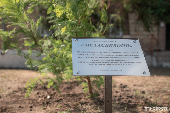 В честь круглой даты в кадетском корпусе обновили зелёные насаждения – рядом с плацем посадили метасеквойю, а также кусты роз, юкки и туи.