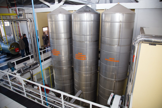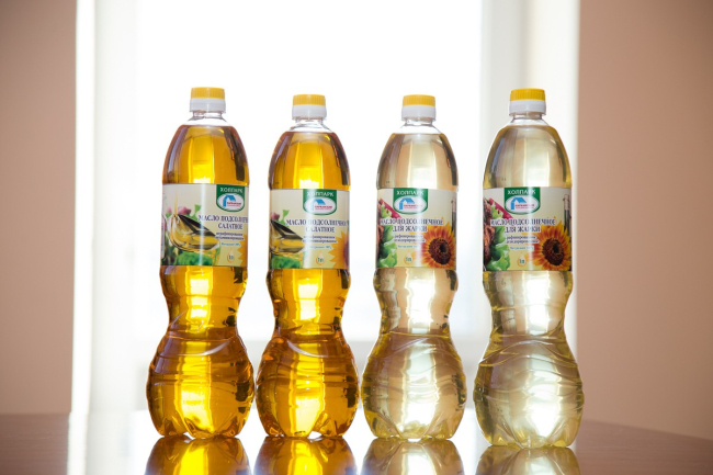 «Оно проходит нейтрализацию, потом гидратацию, дальше — в отбеливатель, где добавляется отбеливающая глина — абсорбент, который снимает все гербициды, тяжёлые металлы. После этого масло фильтруется от глины и ещё раз идёт на кизельгуровый фильтр, потом снова в бак отстоя, где оно стоит некоторое время, охлаждается и поступает на линию дезодорации. После охлаждения — последний патронный фильтр и уже потом поступает в ёмкость готовой продукции, где идёт на линию розлива. Мы, кстати, сами выдуваем бутылки, у нас три формы — для премиум-класса, для высшего сорта и 5-литровая бутылка», — рассказывает Николай Неделков.