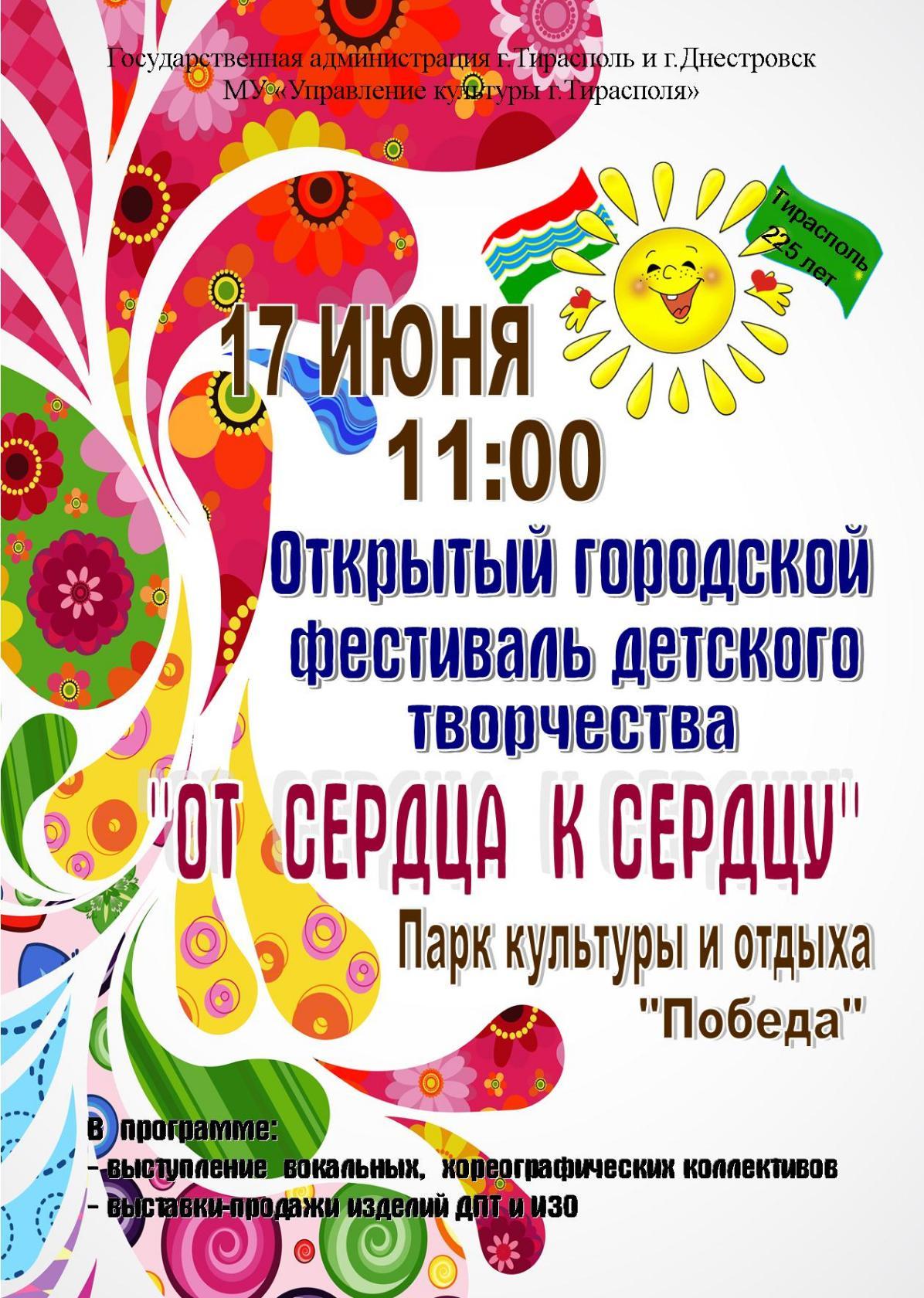 Также в субботу, на территории столичного парка культуры и отдыха «Победа» состоится Открытый городской фестиваль детского творчества «От сердца к сердцу». Планируется выступление вокальных и хореографических коллективов, а также выставки-продажи изделий ДПТ и ИЗО. Начало в 11:00.