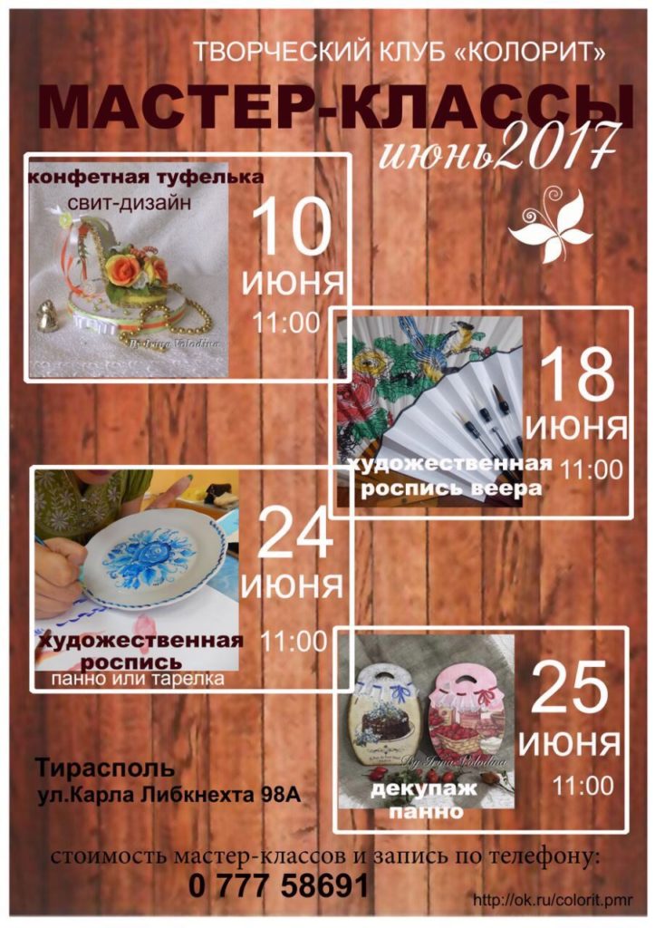 Мастер-класс на тему «Конфетная туфелька: свит дизайн» можно посетить в эту субботу в столичном Центре досуга молодежи «Юбилейный». Его проводит творческий клуб «Художественная роспись веера». Начало мероприятия в 11:00.