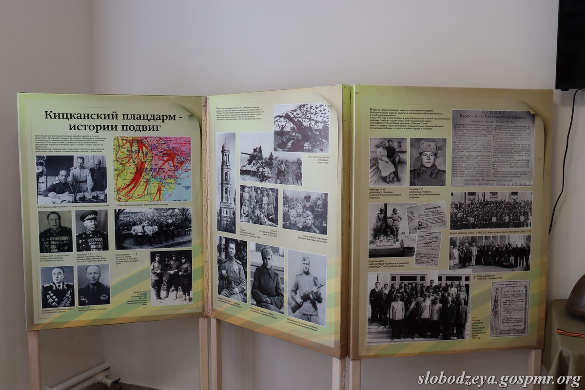 В Слободзейском историческом музее была проведена лекция для учащихся городского теоретического лицея-комплекса им. П. К. Спельник и представлена баннерная экспозиция «Кицканский плацдарм – истории подвиг», а также выставка предметов времён Великой Отечественной войны и книг о событиях тех лет. Среди экспонатов – каска солдата советской армии, фрагменты оружия, командирский планшет, фляги, кружки, блокноты с воспоминаниями ветеранов и стихотворениями, написанными на фронте, сообщается на сайте слободзейской госадминистрации.