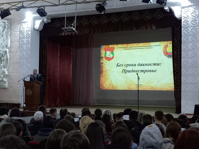 «Международный проект "Без срока давности" был запущен в России, его задача заключается в том, что никакое фашистское преступление не может быть забыто, и оно должно быть донесено до молодого поколения. Потому что в некоторых странах пытаются сфальсифицировать историю. Наш приднестровский край, левобережье Молдавской ССР, бывшая территория Молдавской Автономной Советской Социалистической Республики испытал большинство моментов, связанных с Великой Отечественной войной. Оккупация, продолжавшаяся свыше 900 дней, оставила трагический след в истории Приднестровья: массовые расстрелы, тюрьмы, гетто в Тирасполе, Дубоссарах, Каменке и Рыбнице стали частью страшной реальности того времени», - рассказал Николай Дымченко.