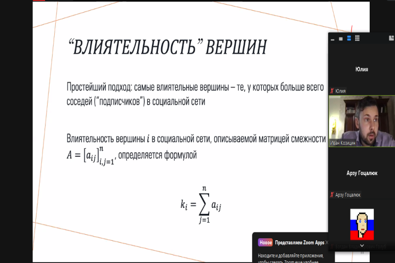 Тирасполь, 8 февраля. /Новости Приднестровья/. Математика и поведение людей… Как использовать первое для изучения второго, сегодня рассказывал старший научный сотрудник Института проблем управления РАН, ассистент кафедры высшей математики Московского физико-технического института (МФТИ) Иван Козицин. Лекцию в честь Дня науки организовало Россотрудничество совместно с МФТИ. В онлайн-режиме к ней подключились около 100 человек: преподаватели, студенты, школьные учителя.