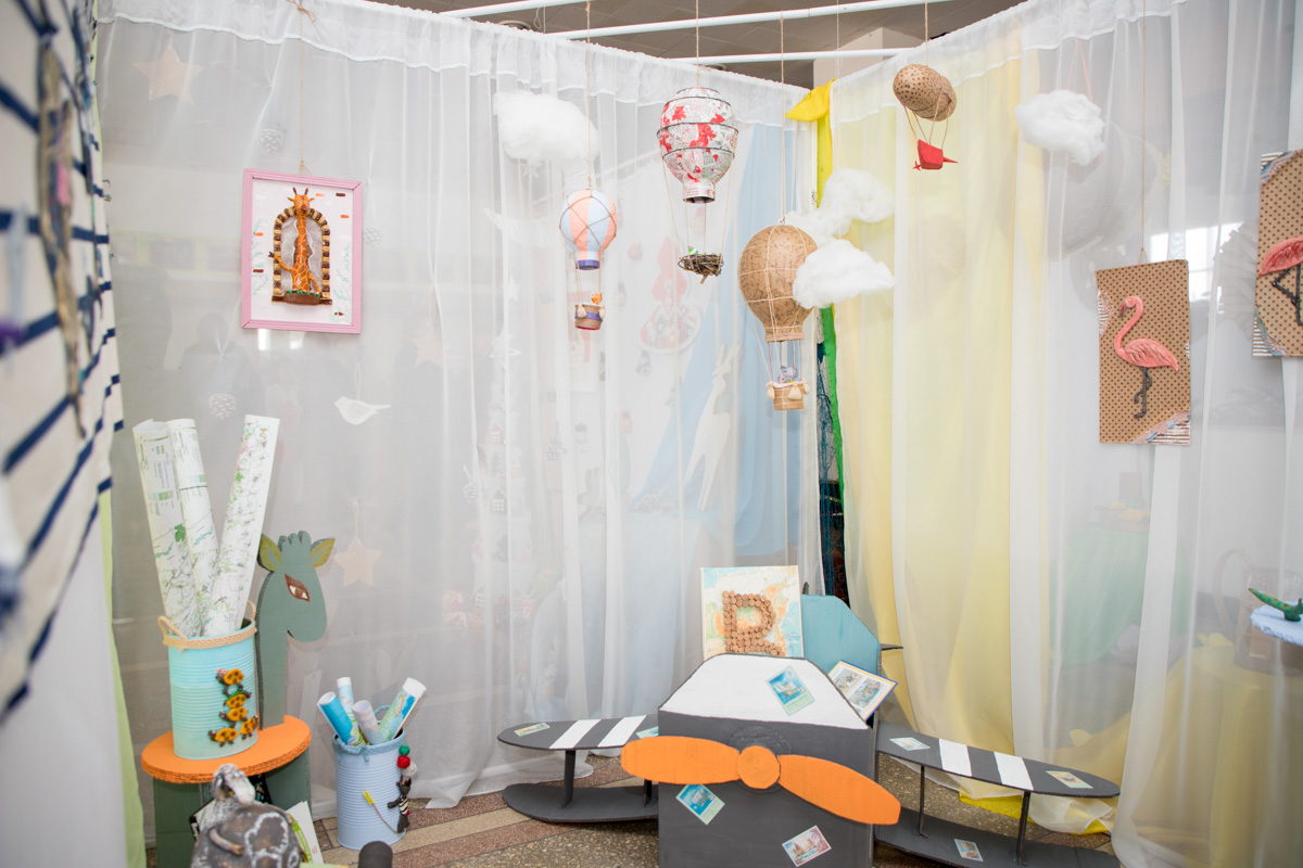 На первом и втором этажах ДДЮТ можно было окунуться в феерию интерьерных стилей: современная классика и модерн, скандинавский стиль и минимализм и те, которым название пока еще не придумано. Всего порядка 100 работ, над которыми трудились около 450 детей.