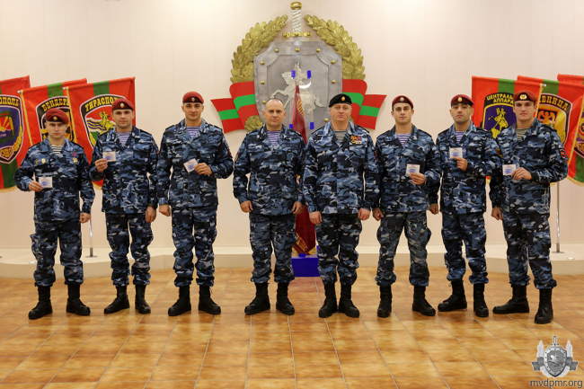 Тирасполь, 5 декабря. /Новости Приднестровья/. Сегодня в МВД в торжественной обстановке первый заместитель министра внутренних дел Сергей Левинский вручил шестерым краповикам удостоверения, подтверждающие их право на ношение головных уборов.