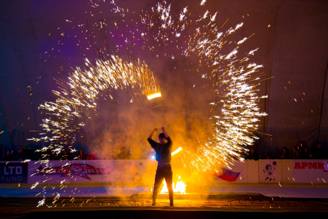 Для зрителей и для самих хоккеистов приятным подарком стало фаер-шоу в конце соревнований, а в перерывах свои номера исполняли приднестровские фигуристы.