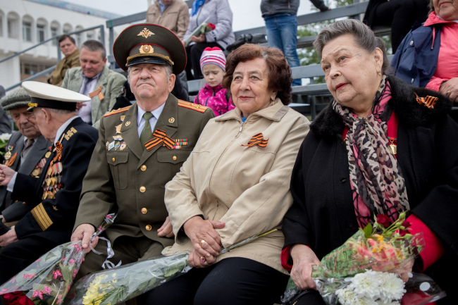 За действом наблюдали тысячи тираспольчан и гостей столицы, руководство города и республики. Повышенное внимание по традиции приковано к главным творцам Победы - ветеранам Великой Отечественной. Для них были приготовлены удобные места перед центральной трибуной.