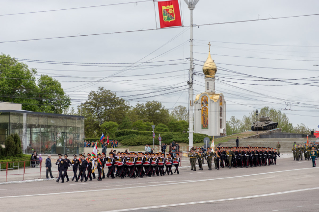 Под звуки военного оркестра по площади Суворова прошли подразделения силовых министерств республики, военнослужащие Оперативной группы российских войск, курсанты, кадеты и суворовцы – в общей сложности 10 парадных расчётов. В составе «коробок» - потомки тех, кто освобождал Европу от коричневой чумы фашизма.