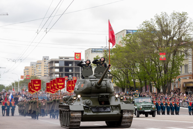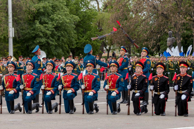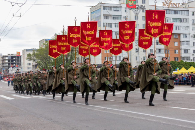 Тирасполь, 9 мая. /Новости Приднестровья/. Праздничные мероприятия в Тирасполе, посвящённые празднованию 74-й годовщины Великой Победы, продолжились масштабным традиционным Парадом Победы.