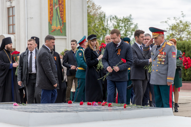 Праздник продолжился церемонией возложения цветов на Мемориале Славы. Венки и цветы к могилам защитников Отечества возложили Президент Вадим Красносельский, глава Правительства Александр Мартынов, председатель Верховного Совета Александр Коршунов, первый Президент ПМР Игорь Смирнов, руководители министерств и ведомств, представители общественности.