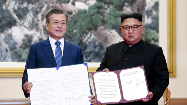 Министры обороны КНДР и Южной Кореи подписали военное соглашение. Стороны договорились отозвать военных из демилитаризованной зоны, разоружить персонал пограничного пункта Пханмунджом, а также полностью вывести наблюдательные пункты Юга и Севера на расстоянии ближе километра до демаркационной линии.