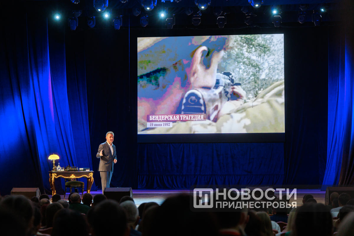 Президент отметил, что приднестровцы принимали участие в освобождении Европы от бесчеловечной идеологии нацизма, которую он назвал болезнью, поразившей умы немецкого народа. Эта идеология вновь проявилась в конце 80-х годов, когда в советских республиках – в том числе и в Молдове – началось движение националистов, всколыхнувшее приднестровское общество.
