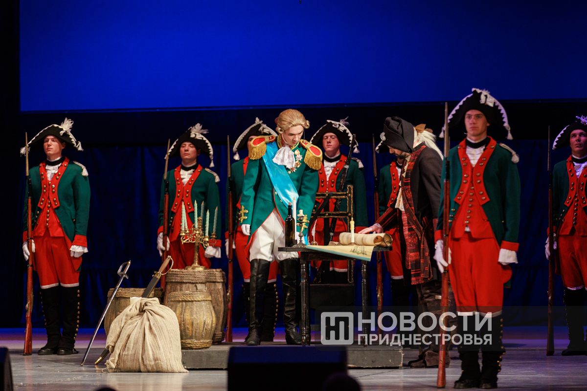 Момент основания Тирасполя был проиллюстрирован с помощью театрализованного представления. На несколько минут Вадим Красносельский уступил сцену актерам государственного театра драмы и комедии им. Аронецкой. Они разыграли момент обсуждения Александром Суворовым и инженером Францем де Воланом причин основания Тираспольской крепости, которая должна была символизировать защиту Россией местного населения, пострадавшего от частых войн и притеснений.