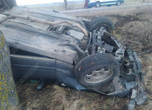 Машина врезалась в дерево и перевернулась. Пострадали водитель и пассажир
