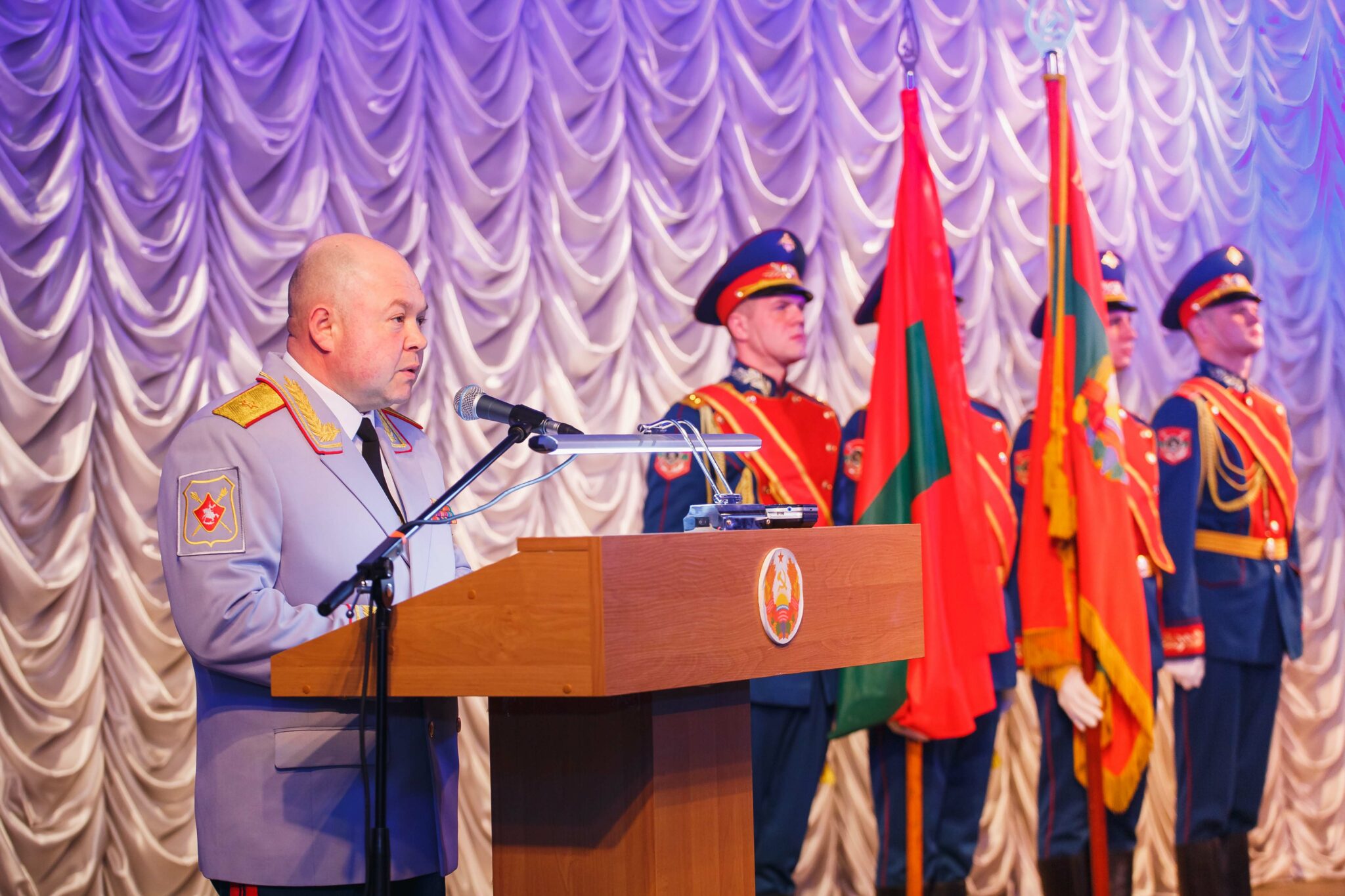 В ходе торжественного собрания ряду военнослужащих были вручены госнаграды и присвоены очередные звания.
