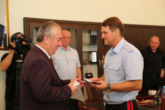 Тирасполь, 6 июля. /Новости Приднестровья/. Министры внутренних дел Приднестровской Молдавской Республики и Республики Абхазия генерал-майоры Руслан Мова и Аслан Кобахия накануне провели встречу в Сухуме, на которой обсудили вопросы сотрудничества и обмена опытом, сообщила пресс-служба МВД ПМР. В завершении встречи руководители министерств обменялись памятными подарками.