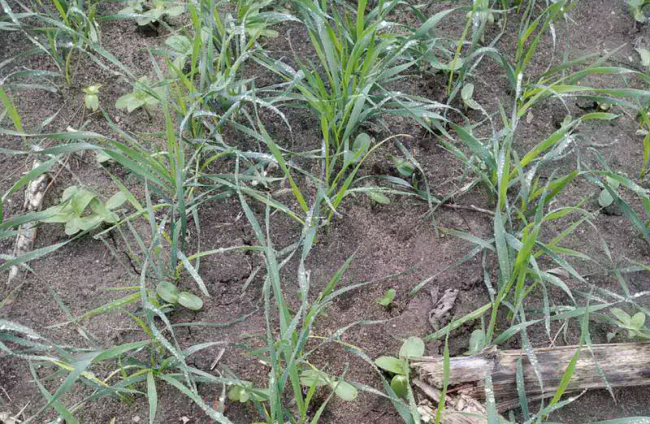 Посевы озимого ячменя находятся в удовлетворительном состоянии, чистые от сорняков, ячмень сформировал по 2-3 листочка высотой 4-6 см.