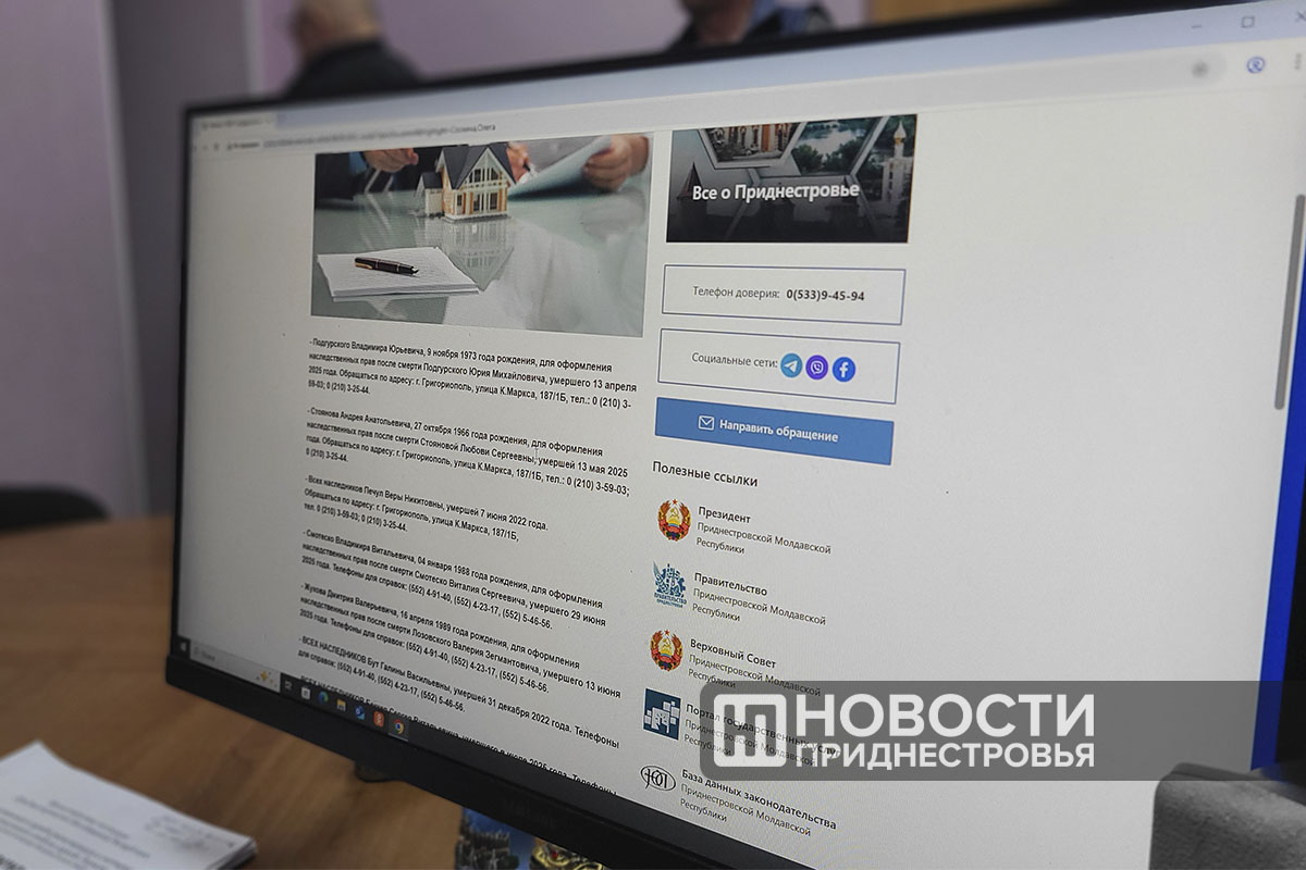 Тирасполь, 16 октября. /Новости Приднестровья/. Министерство юстиции запустило новую услугу – поиск наследственных дел в онлайн-режиме. Это сделали, чтобы облегчить нахождение подобной информации родственниками умершего.