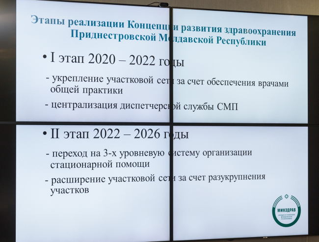 «Два ключевых этапа реализации Концепции: это укрепление первичной сети, то есть обеспечение текущей сети врачами общей врачебной практики, затем увеличение количества участков, снижение нагрузки на врача, разукрупнение участков. При этом параллельно идёт централизация скорой, создание единой диспетчерской службы», - рассказал Алексей Цуркан.