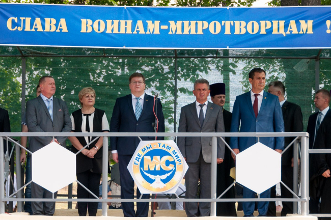 Вместе с тем, ощущение значимости и особой торжественности праздника не оставляло ни на минуту. Очень показательно, что поприветствовать миротворцев прибыло высшее руководство приднестровского государства. С трибуны за парадным шествием колон наблюдали Президент Вадим Красносельский, вице-спикер парламента Галина Антюфеева, дипломаты и министры силового блока.