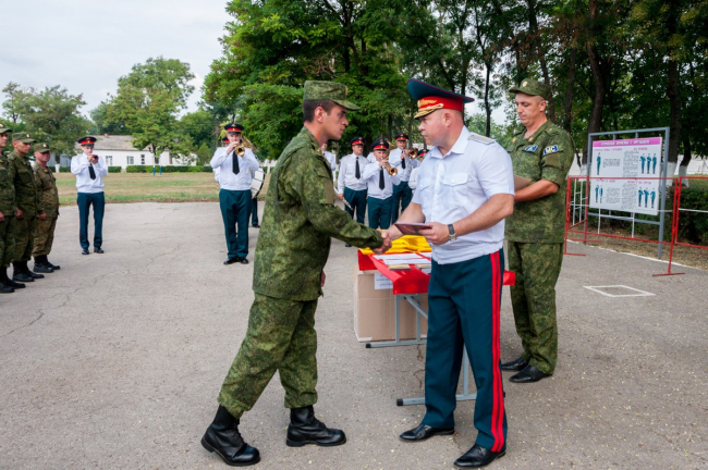 Вдоль аллеи перед плацем выстроились встречавшие гостей наследники славы русского военного оружия и миротворчества, будущая элита Вооружённых сил – воспитанники Тираспольского Суворовского военного училища.