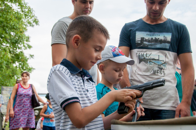 К слову, большой интерес у детишек вызвала выставка оружия и военной техники. Будущие защитники столпились у стендов с пистолетами и автоматами, а самые юные разместились в кабинах военных КРАЗов и Уралов.