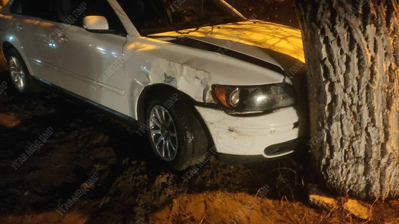 УАЗ двигался по главной, поворачивал налево. В этот момент водитель Volvo решил его обогнать, но не убедился в безопасности манёвра. Иномарка столкнулась с УАЗом, а после врезалась в дерево.