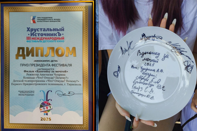 Фильм «Вдогонку за мечтой» получил приз президента фестиваля в конкурсе «Кинокампус-Дети», а команду из Приднестровья удостоили номинации «За стремление к искусству» за стойкость в преодолении множества трудностей и преград на пути к фестивалю.