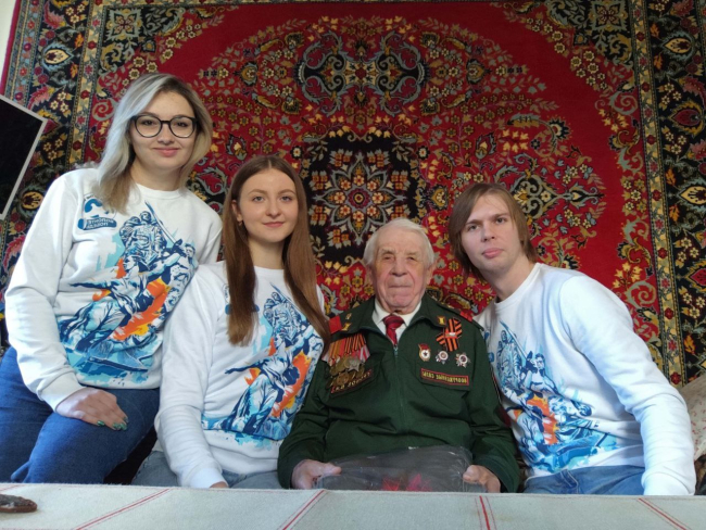Ребята подарили ветерану тёплый плед и праздничный набор. Ветеран рассказал о своей жизни.