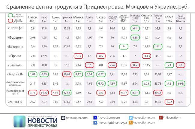 Мониторинг цен на продукты питания в ПМР и соседних странах