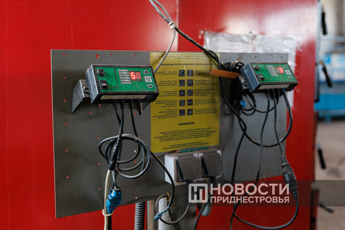Котлы оснащены электронными контроллерами и вентиляторами наддува, что даёт возможность поддерживать стабильную температуру и регулировать процесс горения. На случай перебоев с электроснабжением в цехе есть генератор, который обеспечит работу всей автоматики.