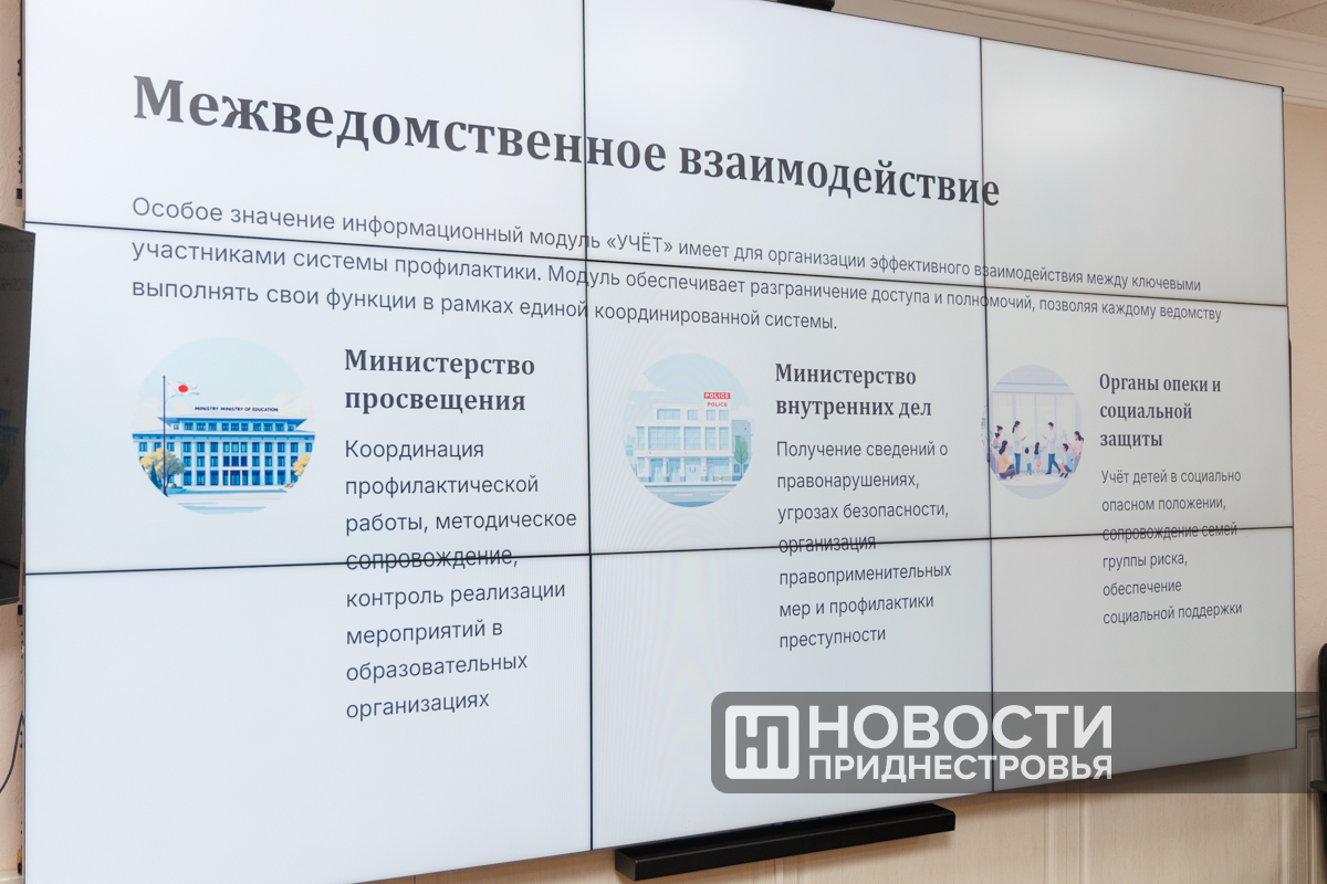 Тирасполь, 3 февраля. /Новости Приднестровья/. По поручению Президента ПМР Вадима Красносельского Министерство внутренних дел совместно с Министерством просвещения занялись созданием системы противодействия школьному насилию (буллингу) и правонарушениям среди подростков. Сегодня специалисты впервые представили пилотный проект — информационный модуль «Учёт».