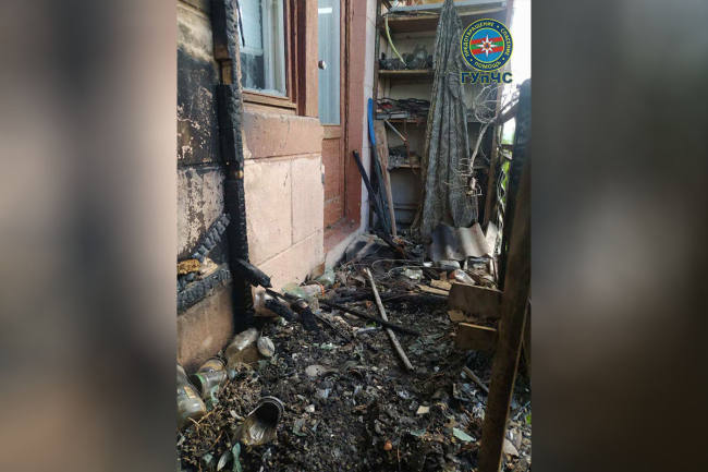 На балконе, с которого начался пожар, сгорел деревянный стеллаж, лопнула и обгорела обшивка из шифера. У соседей от высокой температуры лопнуло стекло, закоптились стены. Частично сгорел утеплитель внутри.