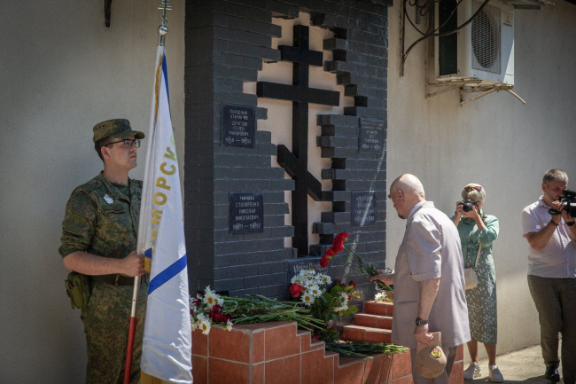 Алые гвоздики, как символ неувядающей памяти и неутихающей боли потери, возложил Президент и к поминальному кресту, который установили на фасаде одного из бендерских зданий в центральной части города. Он напоминает о скорбных событиях, произошедших на этом месте в ночь с 19 на 20 июня 1992 года, и о подвиге казаков, вставших на защиту бендерчан. За время военных действий от оружия молдавских силовиков погибли 92 казака.