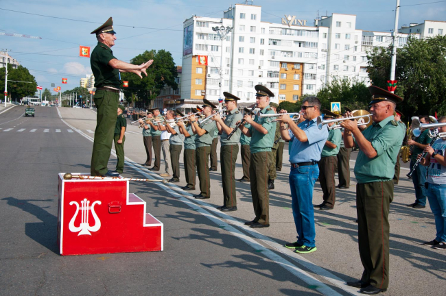 Парад будет сопровождать военный оркестр Главного штаба Вооруженных сил. После прохождения парадных расчетов рота Почетного караула выступит с традиционным плац-парадом, сообщает пресс-служба Минобороны ПМР.