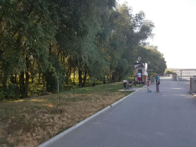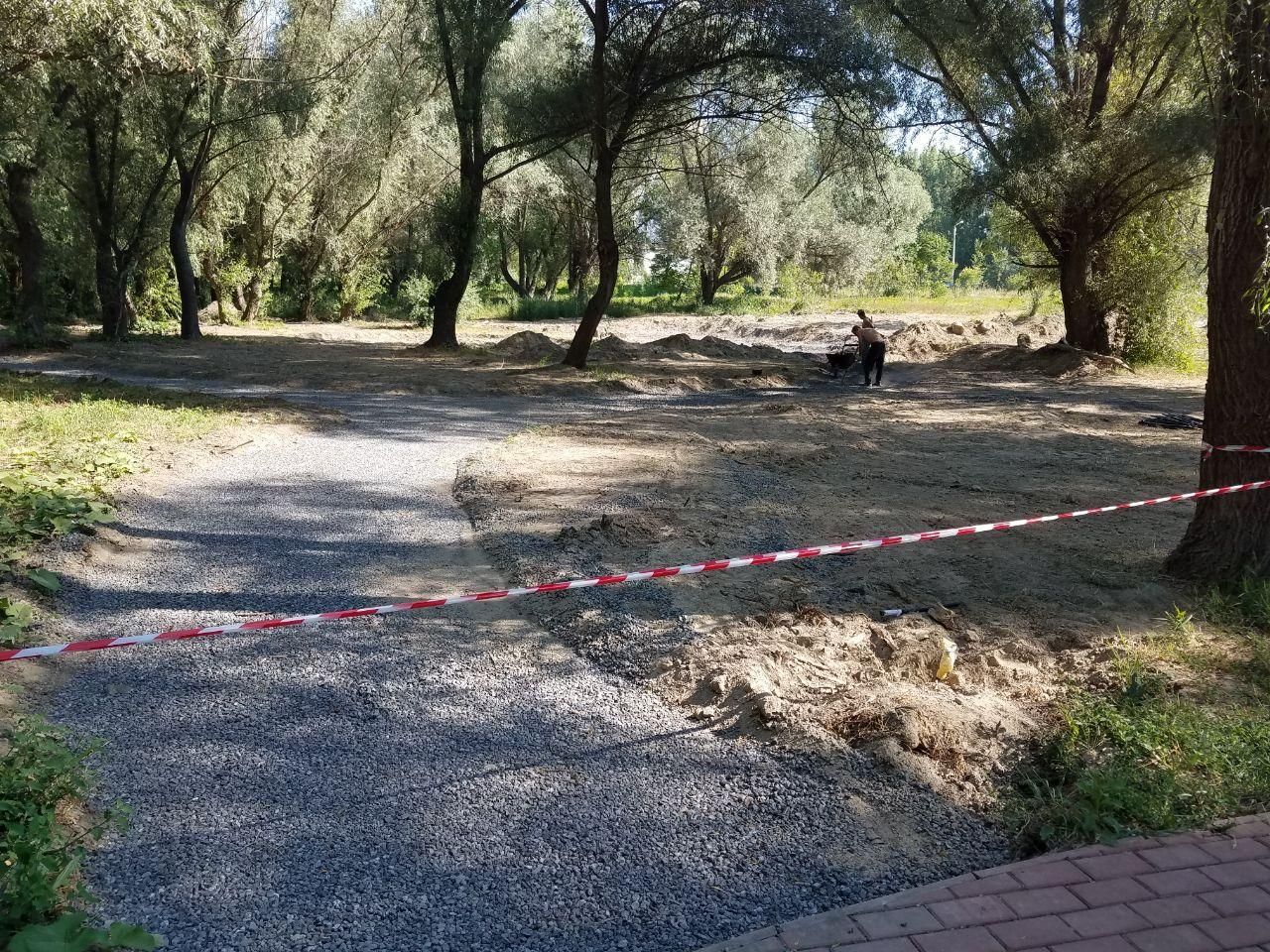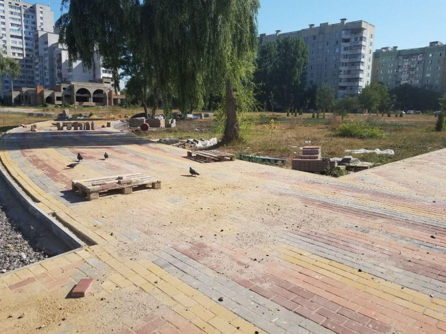 Благоустроить место у набережной поручил Президент Вадим Красносельский. Работы идут полным ходом. Строители укладывают цветные пешеходные дорожки, а с другой стороны набережной расчищают место для новых тропинок среди деревьев. Новый парк обустраивают на средства Фонда капвложений.