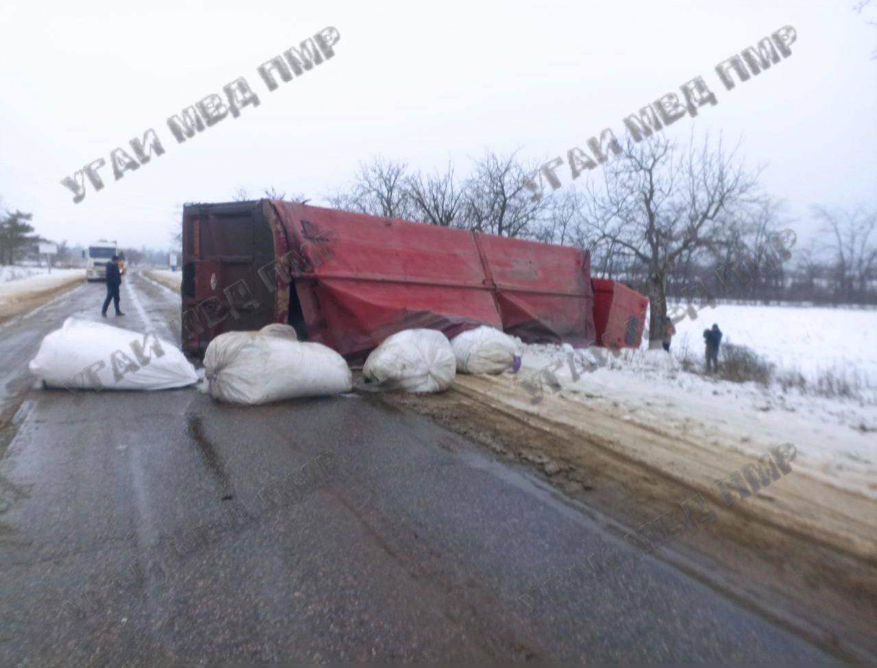 Дубоссары, 23 января. /Новости Приднестровья/. 22 января на объездной дороге Дубоссар перевернулся грузовик, перевозивший селитру из порта Джурджулешты в Рыбницу. Водитель при обгоне потерял управление на скользкой дороге.