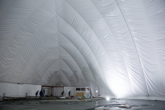 В остальные месяцы пластиковое напольное покрытие позволит использовать объект для игровых видов спорта. В это время температуру в помещении будут поддерживать на уровне +20…+22°С с помощью кондиционеров.