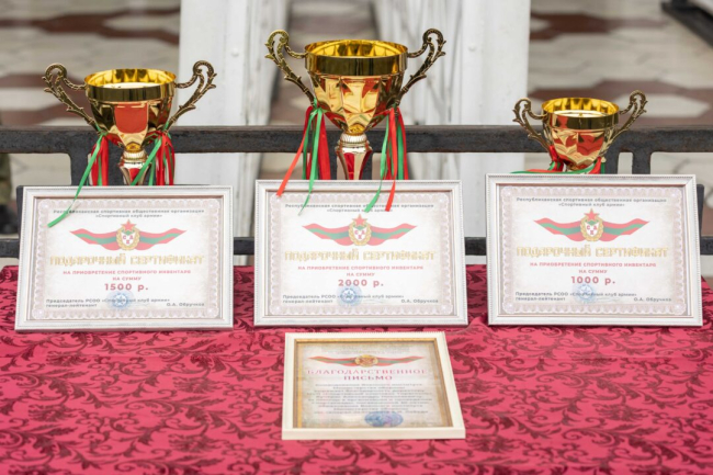Спартакиада завершилась церемонией награждения. Участникам, занявшим призовые места в соревнованиях по различным видам спорта, вручили грамоты министра обороны.