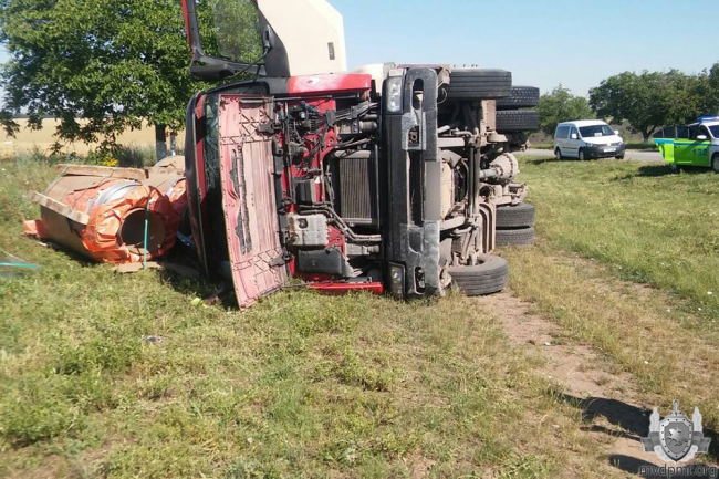 На трассе вблизи села Малаешты перевернулся грузовик