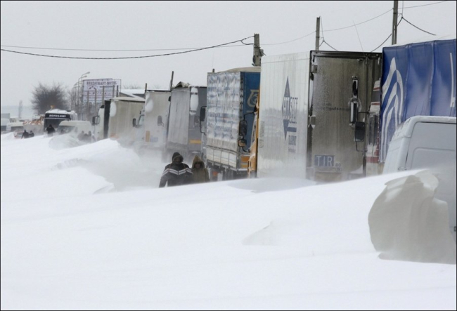 На трассе Донецк-Мариуполь в снежной ловушке оказались десятки автомобилей. Аналогичная ситуация сложилась на трассе Кировоград-Николаев.