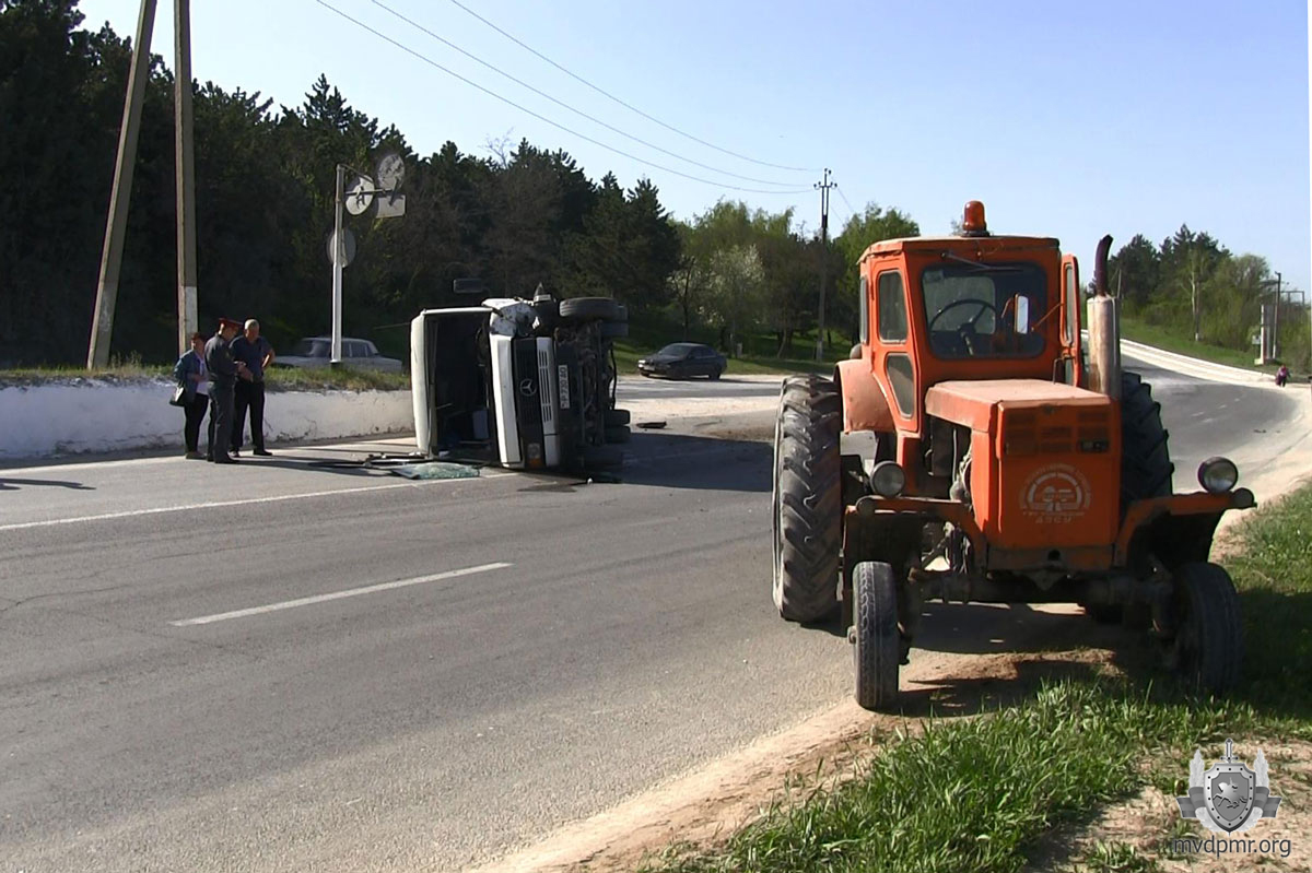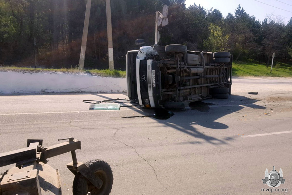 Рыбница, 26 апреля. /Новости Приднестровья/. Сегодня утром на въезде в Рыбницу, на пересечении улиц Пушкина и Зелёной, маршрутное такси столкнулось с трактором, который выполнял дорожные работы. От удара спецтехнику отбросило в сторону, микроавтобус опрокинулся на бок, сообщает пресс-служба МВД.