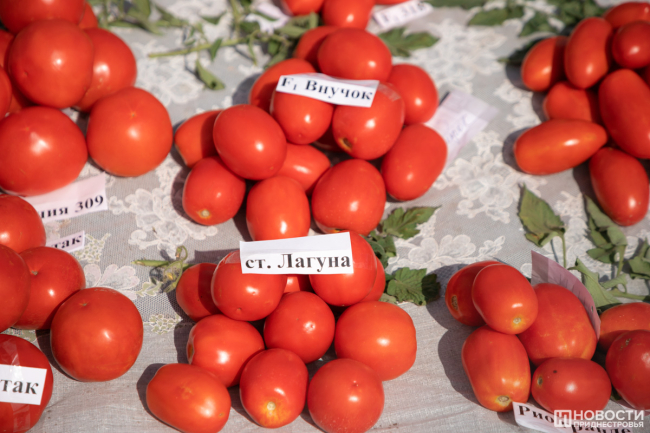 «Важен и внешний вид. У нас есть плоды овально-цилиндрической формы. Это всё сорта и гибриды для отрытого грунта. Если сравнивать с тепличными, то там получились более крупные томаты за счёт постоянного и своевременного полива. В этой 5-летке у нас задача стоит создать среднеспелый сорт с массой 130-140 граммов для более длительного сбора – это более поздние сорта», – рассказал научный сотрудник Евгений Спиваков.