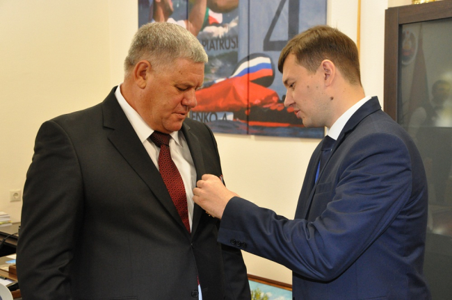 Тирасполь, 12 октября. /Новости Приднестровья/. Начальник Государственной службы по спорту ПМР Вячеслав Соколенко согласно указу Президента награждён орденом «За заслуги» первой степени. Накануне эту награду руководителю, отмечавшему 65-летний юбилей, вручили заместители председателя Правительства Алексей Цуркан и Станислав Касап.