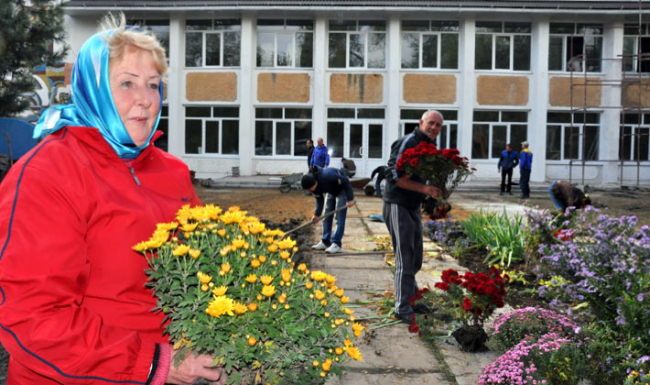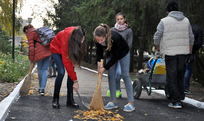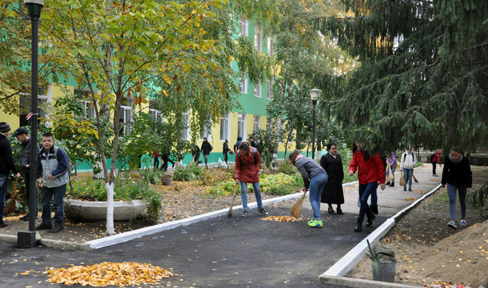 Большой объем работ сегодня выполнил коллектив гимназии №1. В то время как рабочие завершали монтаж подоконников, заменяли входные двери и занимались благоустройством пришкольной территории, гимназисты и педагоги мыли окна, вывозили строительные материалы и мусор, убирали сухую траву и листья.