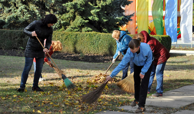 Коллектив Государственной администрации Дубоссарского района и города Дубоссары занялся уборкой территории в центре города, в парковой зоне у площади Победы