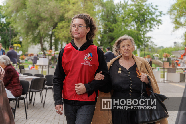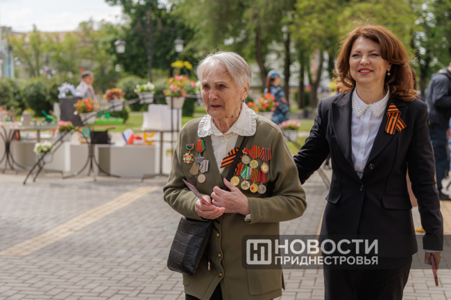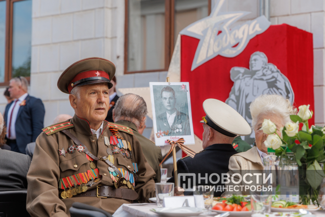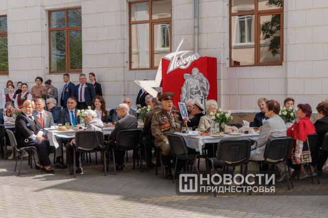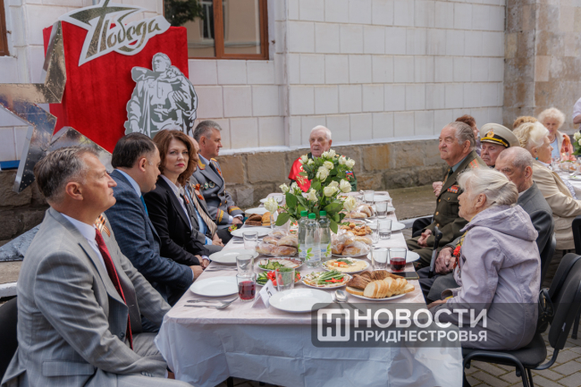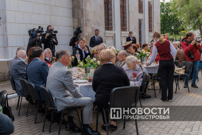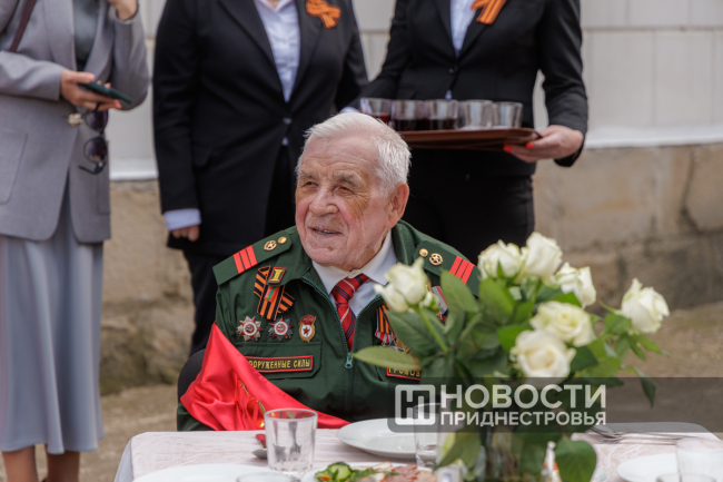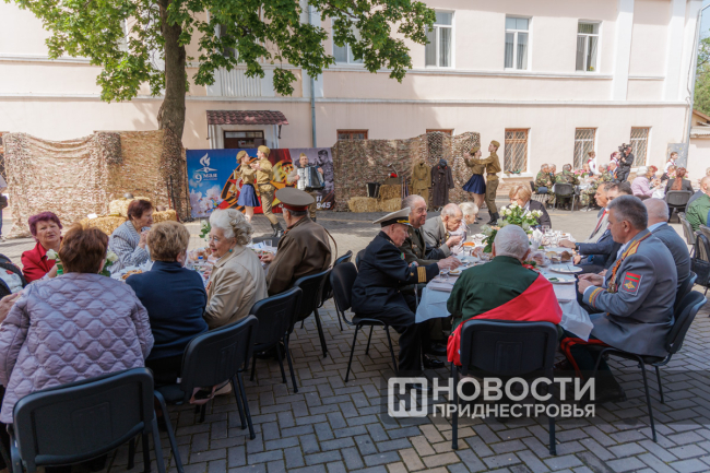 Тирасполь, 8 мая. /Новости Приднестровья/. По многолетней традиции ко Дню Победы в Тирасполе организовали фронтовую землянку. Участник Великой Отечественной войны, труженики тыла, узники концлагерей собрались в сквере у столичного Дворца культуры. В торжественном мероприятии принял участие Президент ПМР Вадим Красносельский. Обращаясь к ветеранам и приравненным к таковым, глава государства поблагодарил за вклад в победную весну 1945 года.