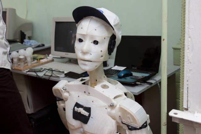 В числе представленных конструкций и интеллектуальных систем, которых, к слову, было более сорока, особое внимание к себе приковали механический орехокол, индукционный котел отопления и робот по имени «InMoov».