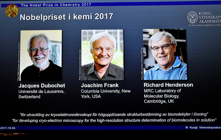 Нобелевская премия 2017 года в области химии присуждена Жаку Дюбоше, Иокиму Франку и Ричарду Хендерсону за разработку криоэлектронной микроскопии для определения структуры молекул с высоким разрешением в растворе. Об этом заявил в среду Нобелевский комитет Королевской академии наук, сообщает ТАСС.